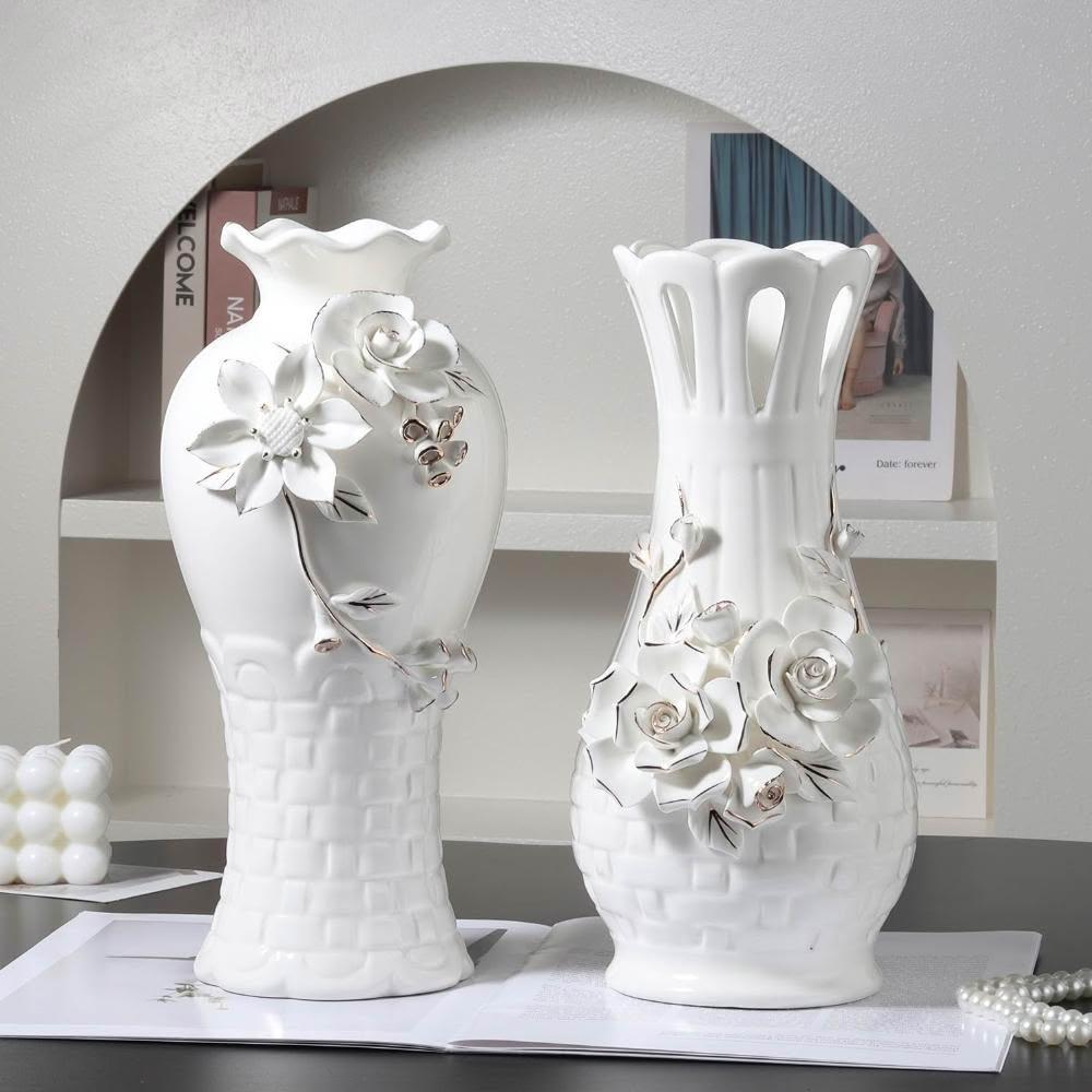 歐式浮雕手工捏花高級陶瓷花瓶送禮佳品客廳擺件水培鮮花裝飾品