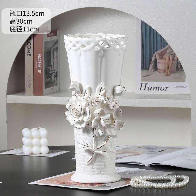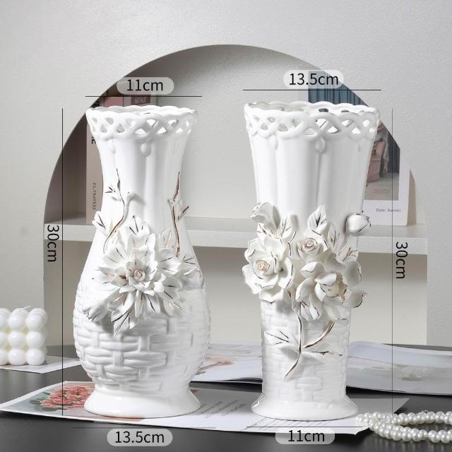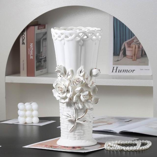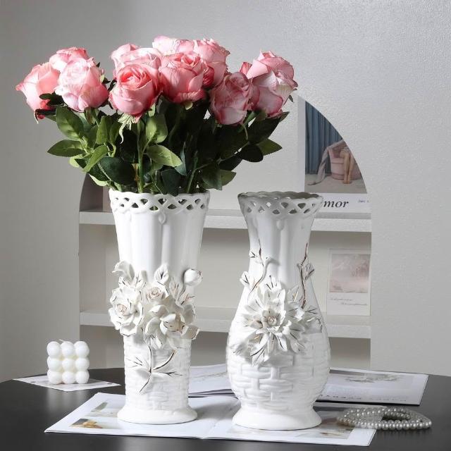 歐式浮雕手工捏花高級陶瓷花瓶送禮佳品客廳擺件水培鮮花裝飾品