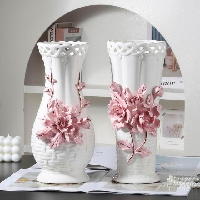 歐式浮雕手工捏花高級陶瓷花瓶送禮佳品客廳擺件水培鮮花裝飾品