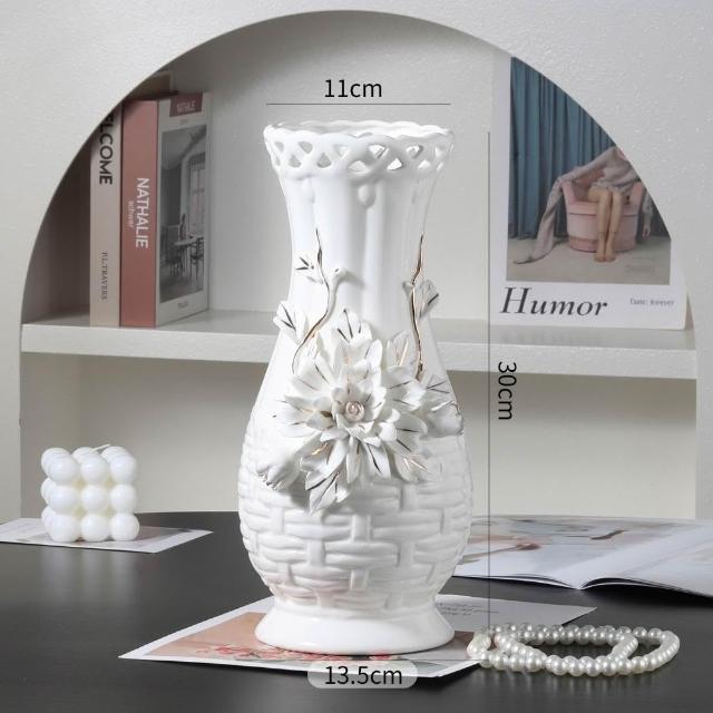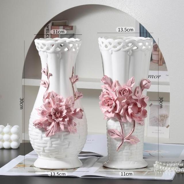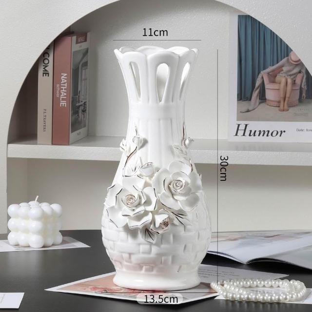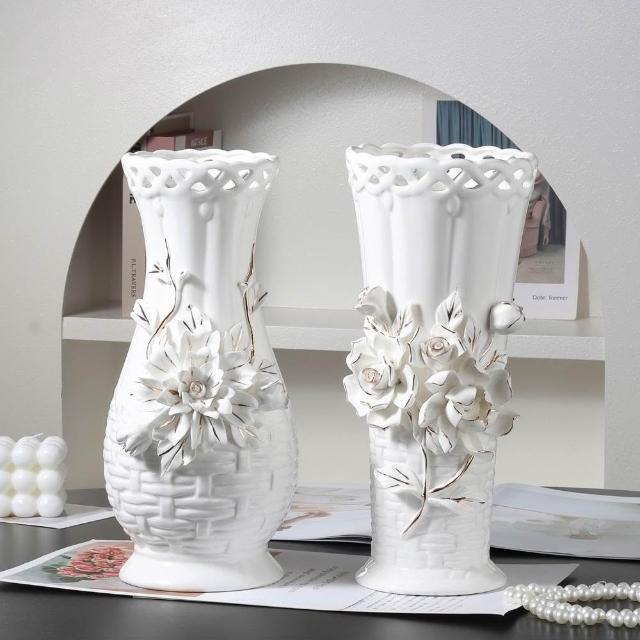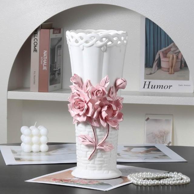 歐式浮雕手工捏花高級陶瓷花瓶送禮佳品客廳擺件水培鮮花裝飾品
