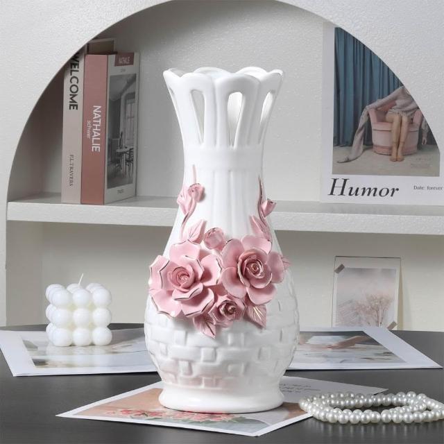 歐式浮雕手工捏花高級陶瓷花瓶送禮佳品客廳擺件水培鮮花裝飾品