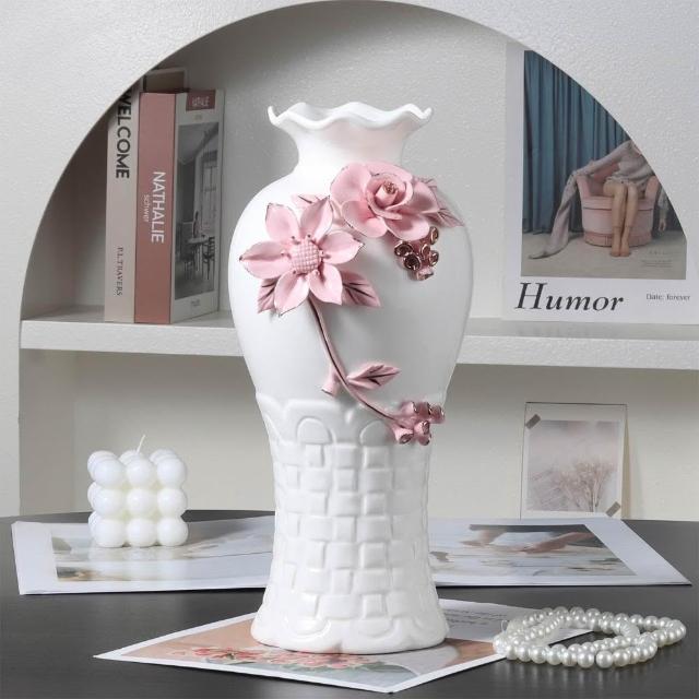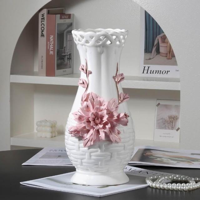 歐式浮雕手工捏花高級陶瓷花瓶送禮佳品客廳擺件水培鮮花裝飾品