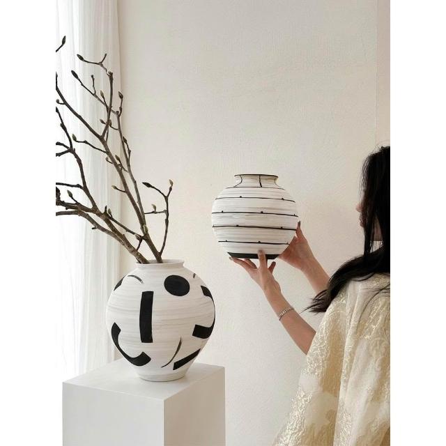 手繪陶土罐新中式花瓶擺件客廳高級藝術感侘寂花器