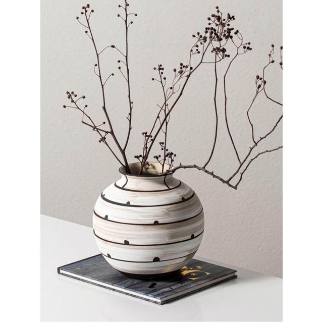 手繪陶土罐新中式花瓶擺件客廳高級藝術感侘寂花器
