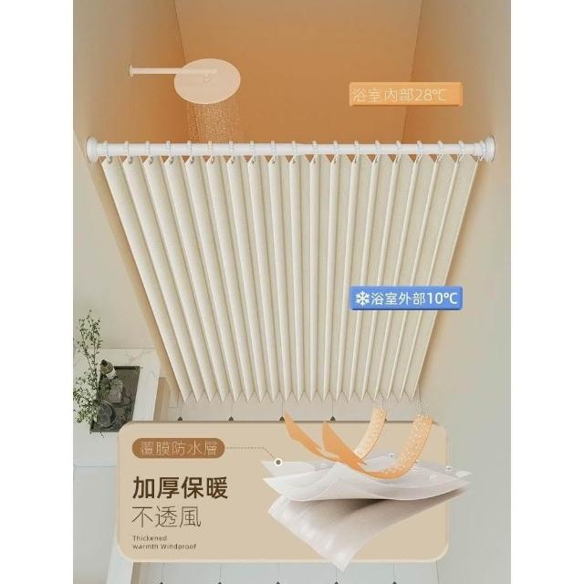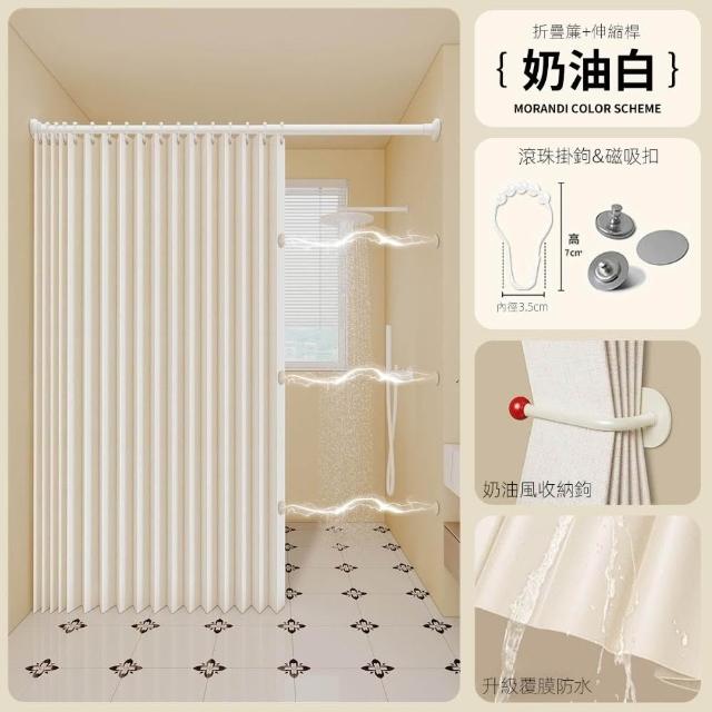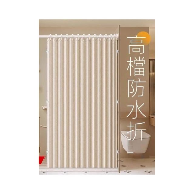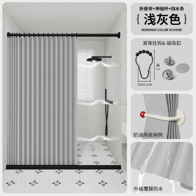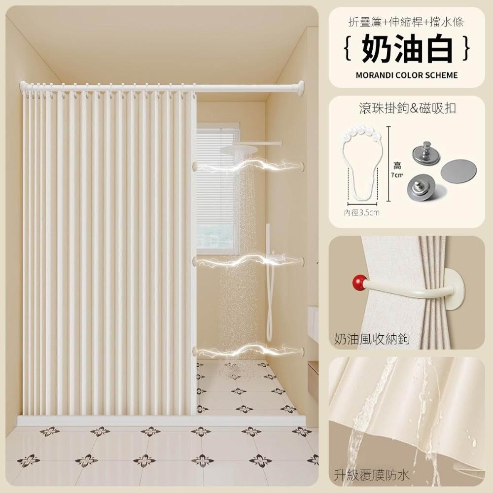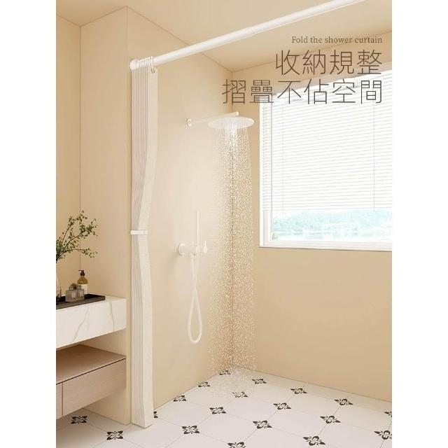 浴室折疊浴簾免打孔防水布高檔衛生間隱形掛簾幹濕分離隔斷簾套裝