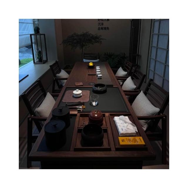 新中式北美黑胡桃木茶桌椅組合實木禪意簡約高端辦公茶室一體茶臺