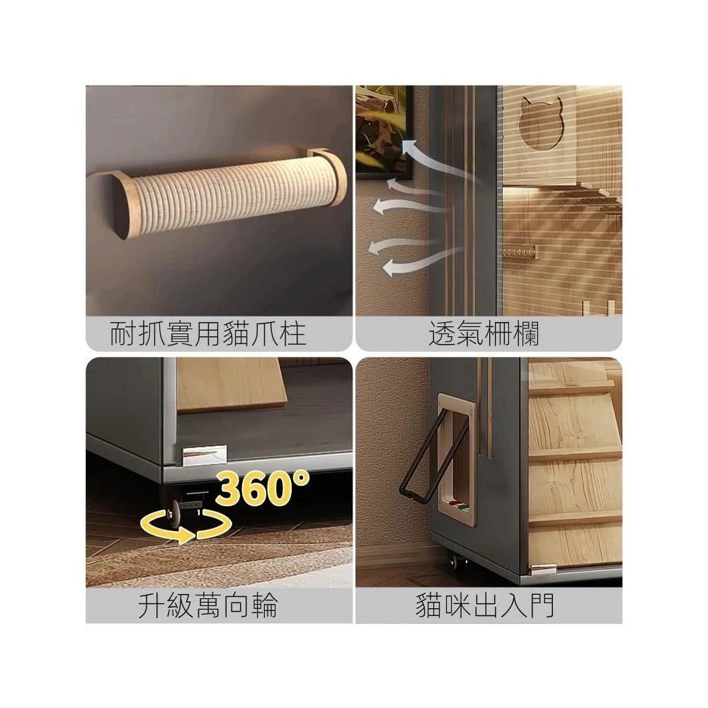 貓別墅家用室內貓屋貓窩超大自由空間貓櫃貓咪爬架一體木質貓籠子