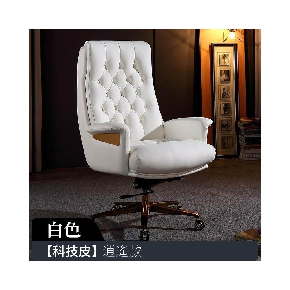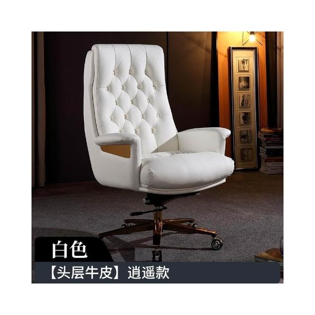 真皮老闆椅商務辦公室牛皮辦公椅白色歐式老闆座椅舒適電腦椅子