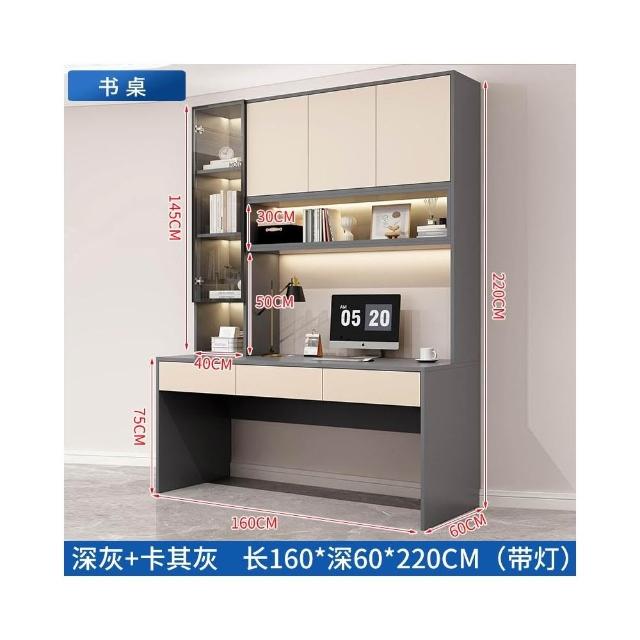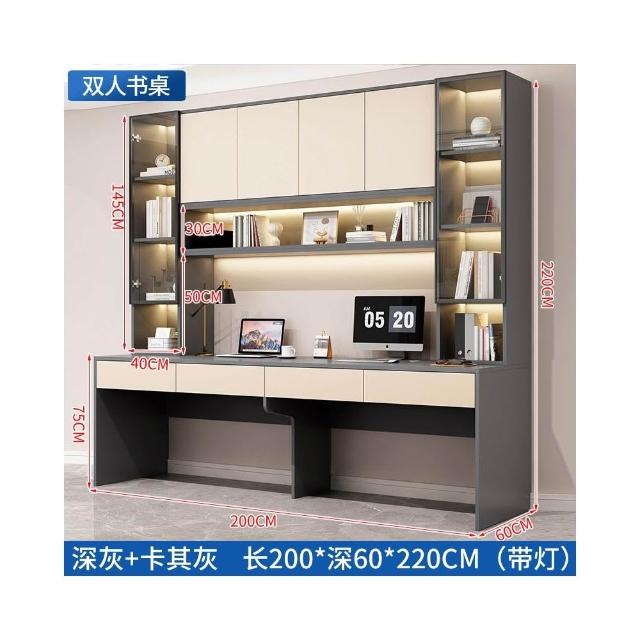雙人書桌書櫃一體整牆實木電腦桌書架輕奢帶玻璃門學生臥室學習桌