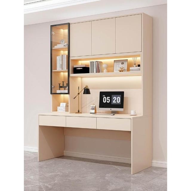 雙人書桌書櫃一體整牆實木電腦桌書架輕奢帶玻璃門學生臥室學習桌