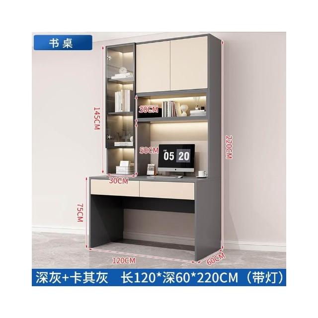 雙人書桌書櫃一體整牆實木電腦桌書架輕奢帶玻璃門學生臥室學習桌