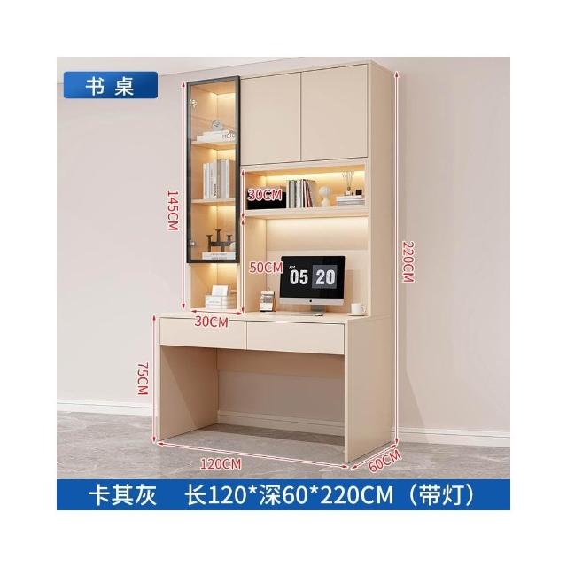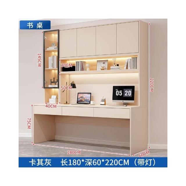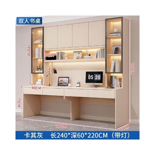 雙人書桌書櫃一體整牆實木電腦桌書架輕奢帶玻璃門學生臥室學習桌