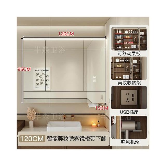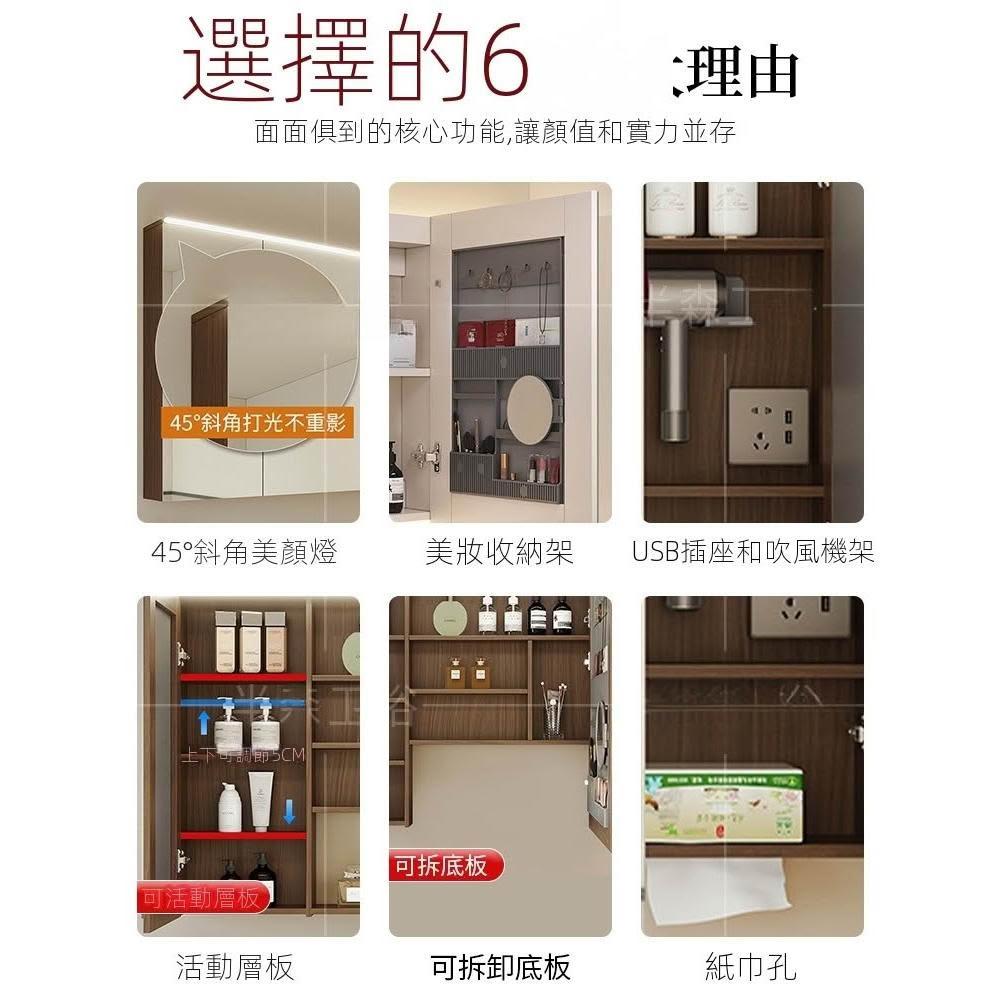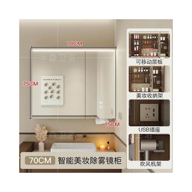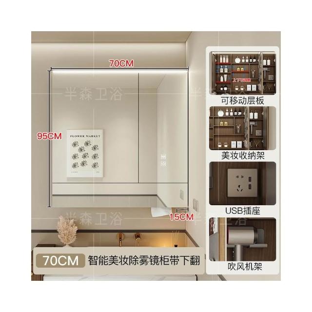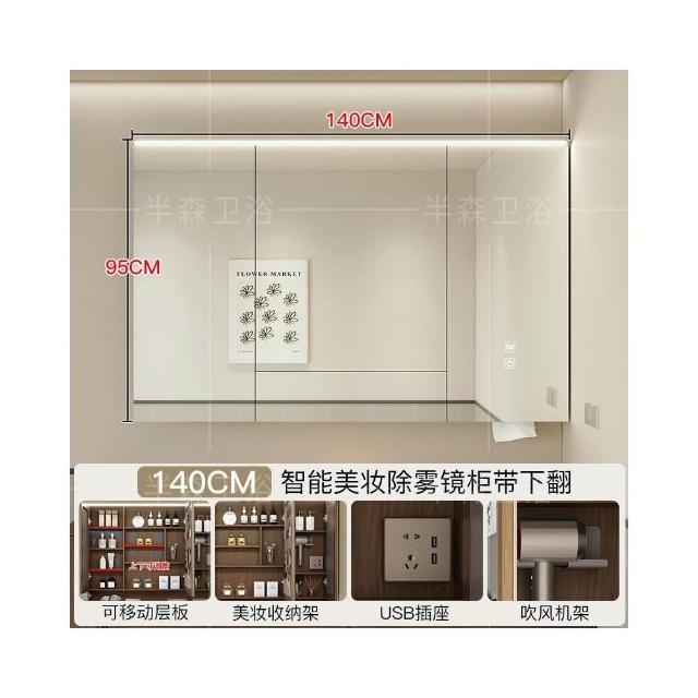智能浴室鏡櫃單獨定制掛牆式帶燈插座除霧美妝衛生間鏡子實木收納