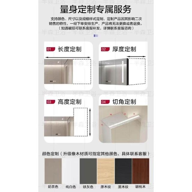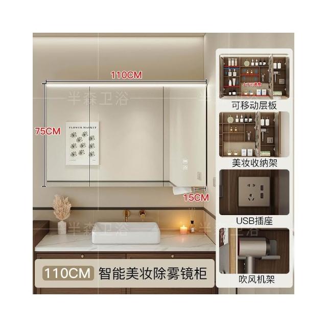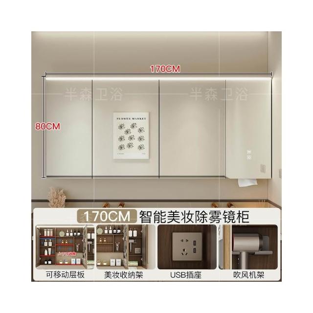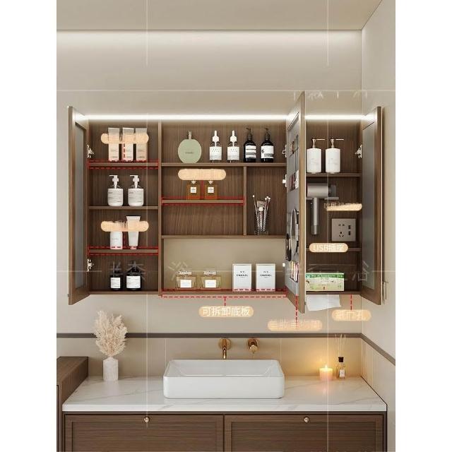 智能浴室鏡櫃單獨定制掛牆式帶燈插座除霧美妝衛生間鏡子實木收納