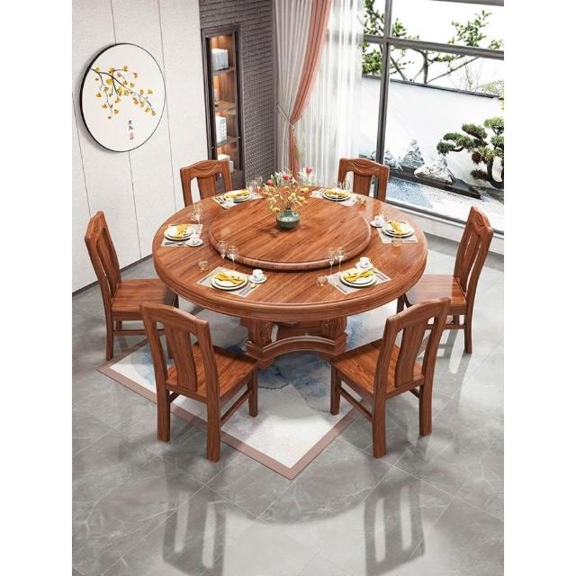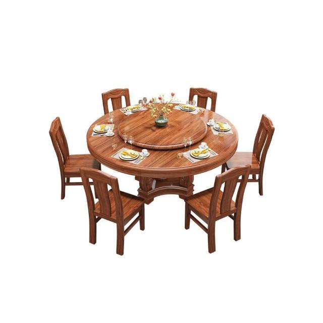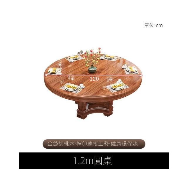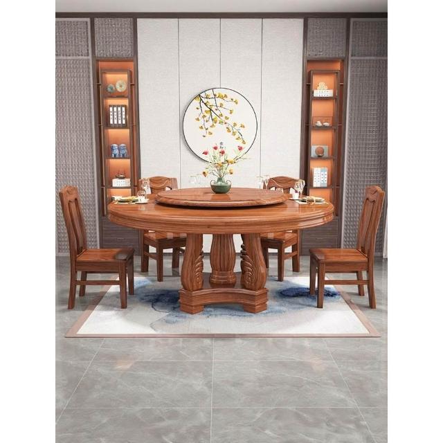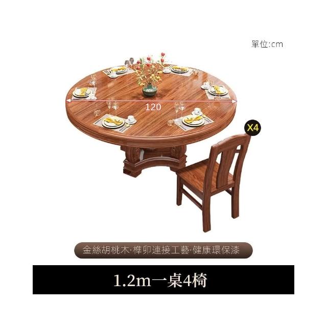 新中式胡桃木實木餐桌圓桌吃飯桌家用小戶型中式圓形餐桌椅組合H