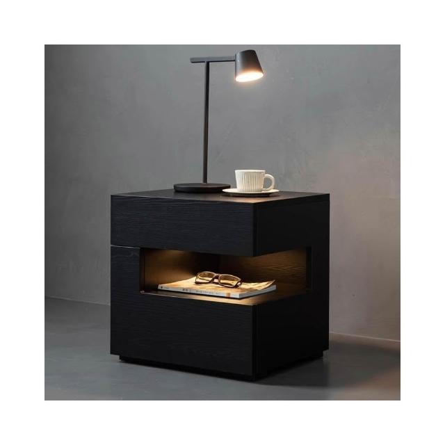 極簡床頭櫃意式創意床邊櫃現代黑色床頭櫃黑色