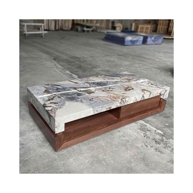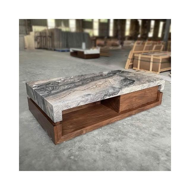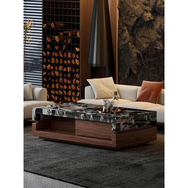 黑大理石奢石茶几客廳2024新款家用胡桃木輕奢高級感