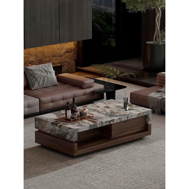 黑大理石奢石茶几客廳2024新款家用胡桃木輕奢高級感