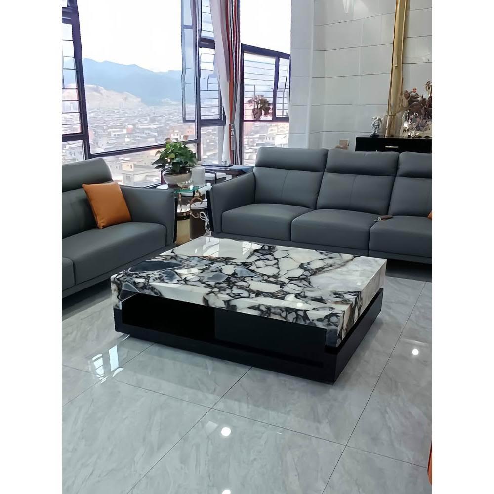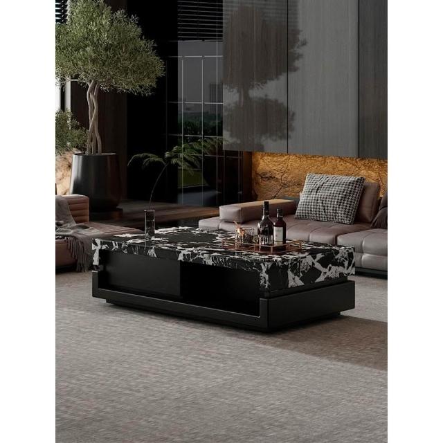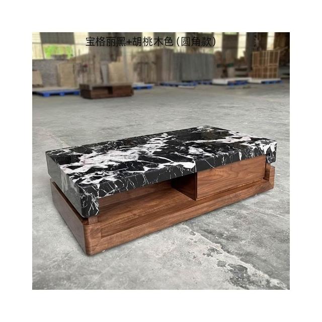 黑大理石奢石茶几客廳2024新款家用胡桃木輕奢高級感