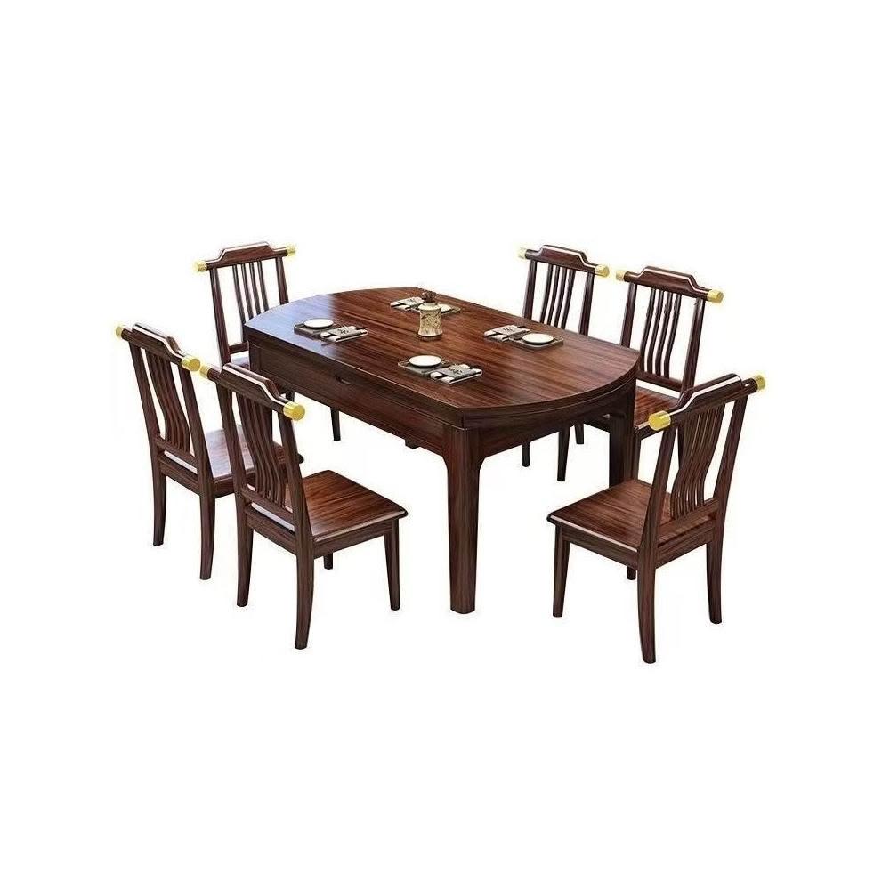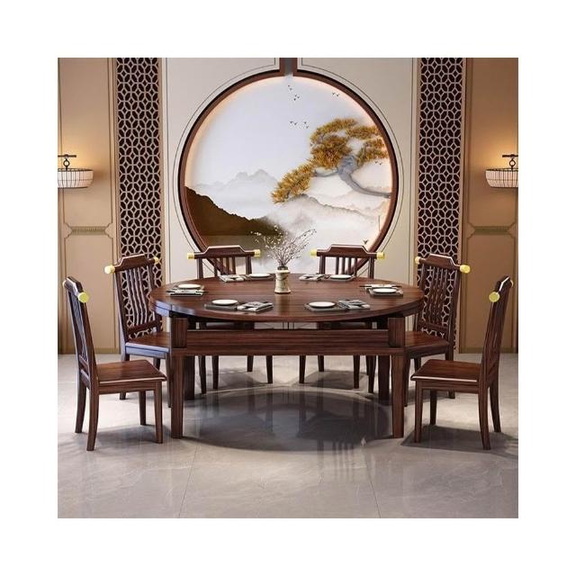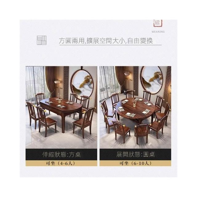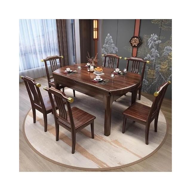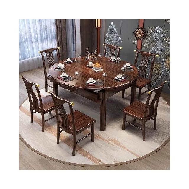 新中式烏金木餐桌椅組合現代簡約小戶型可伸縮家用吃飯桌方圓兩用