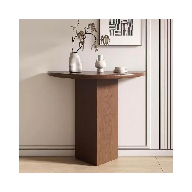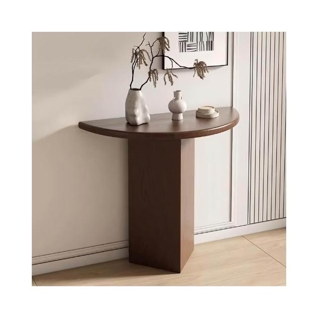 侘寂風實木半圓靠牆玄關桌家用入戶走廊弧形玄關臺過道裝飾條案