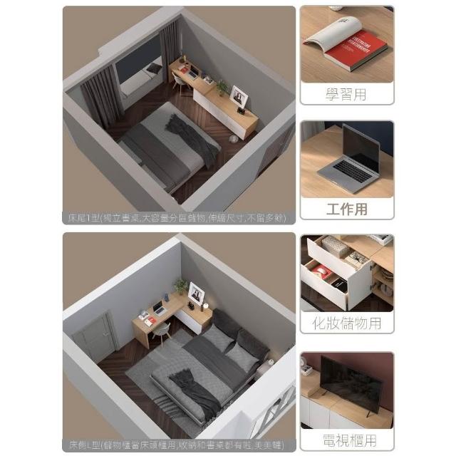 現代簡約臥室書桌電腦桌妝臺床尾鬥櫃電視櫃一體帶伸縮轉角寫字臺