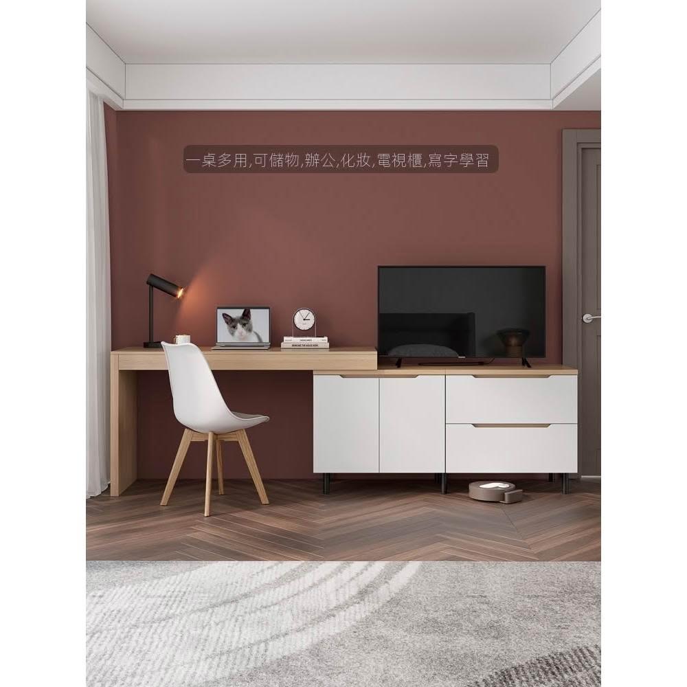 現代簡約臥室書桌電腦桌妝臺床尾鬥櫃電視櫃一體帶伸縮轉角寫字臺