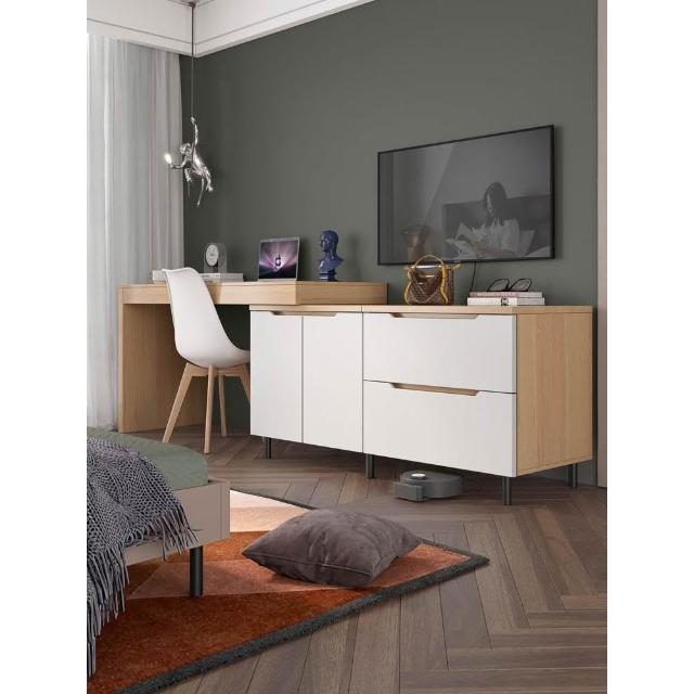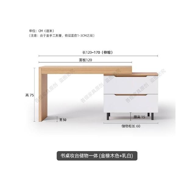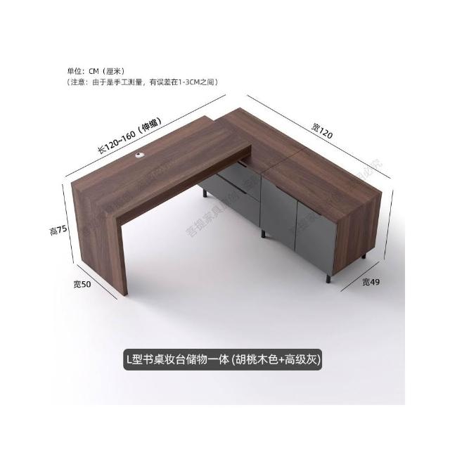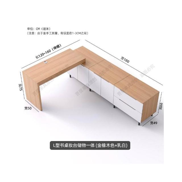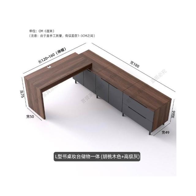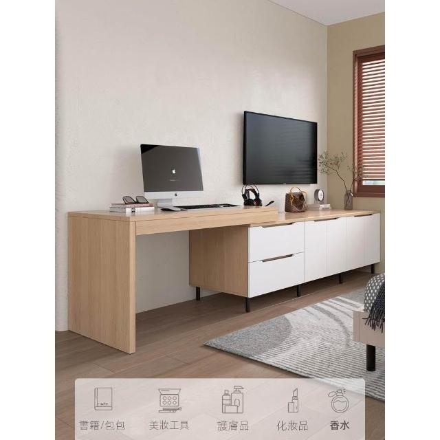 現代簡約臥室書桌電腦桌妝臺床尾鬥櫃電視櫃一體帶伸縮轉角寫字臺