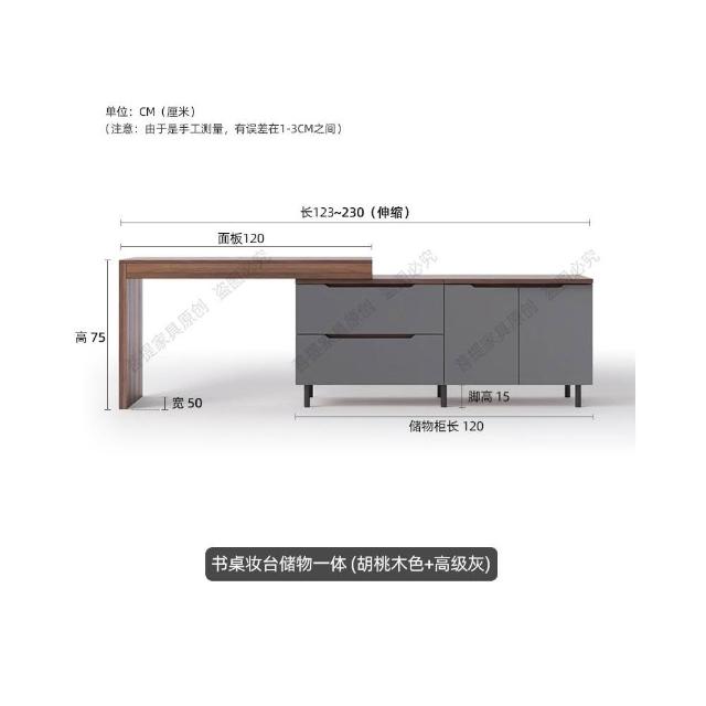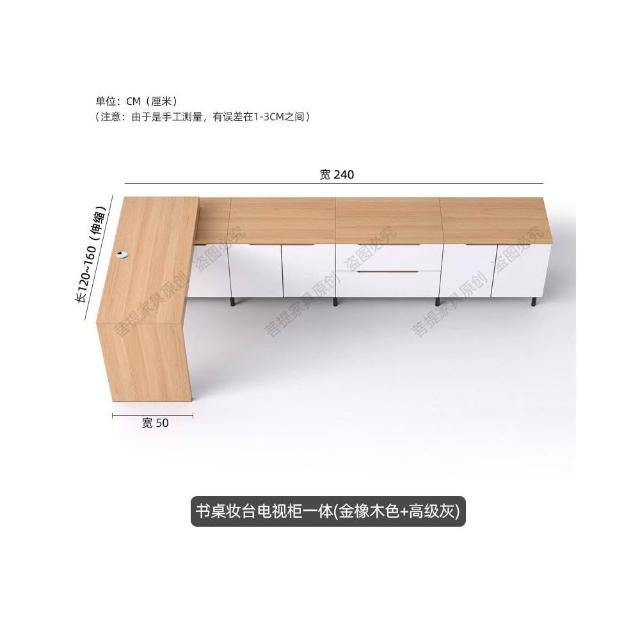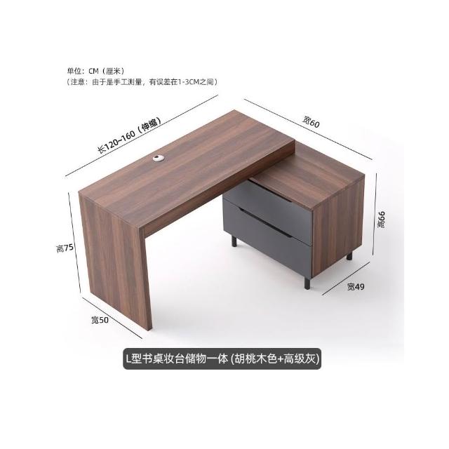 現代簡約臥室書桌電腦桌妝臺床尾鬥櫃電視櫃一體帶伸縮轉角寫字臺