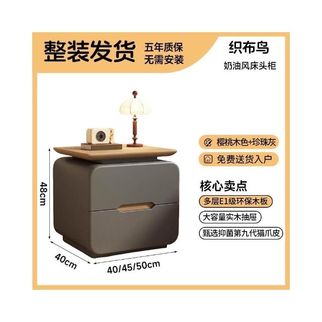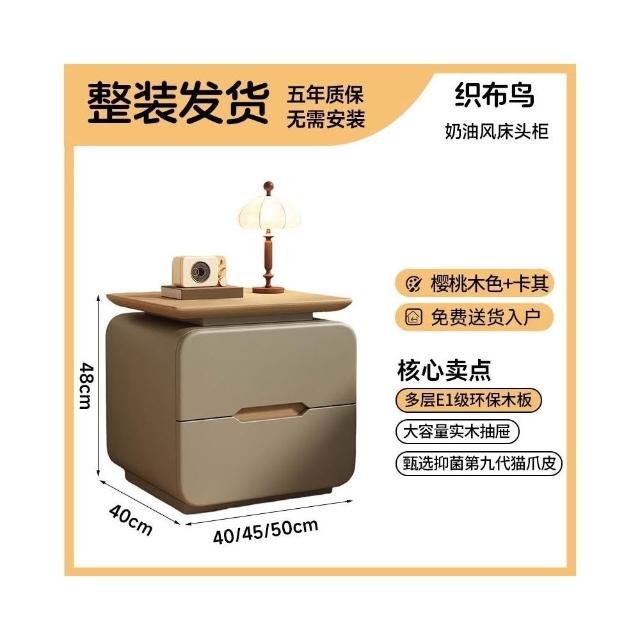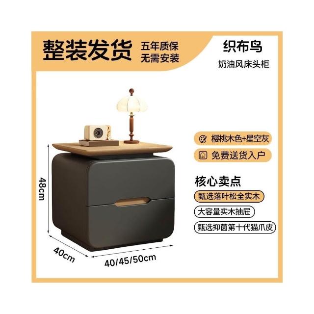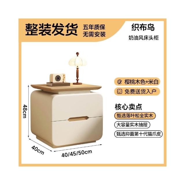 免安裝實木床頭櫃2025新款家用臥室輕奢高級感收納櫃奶油風儲物櫃
