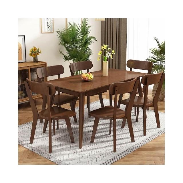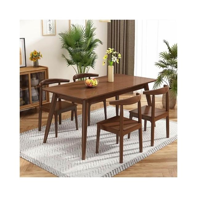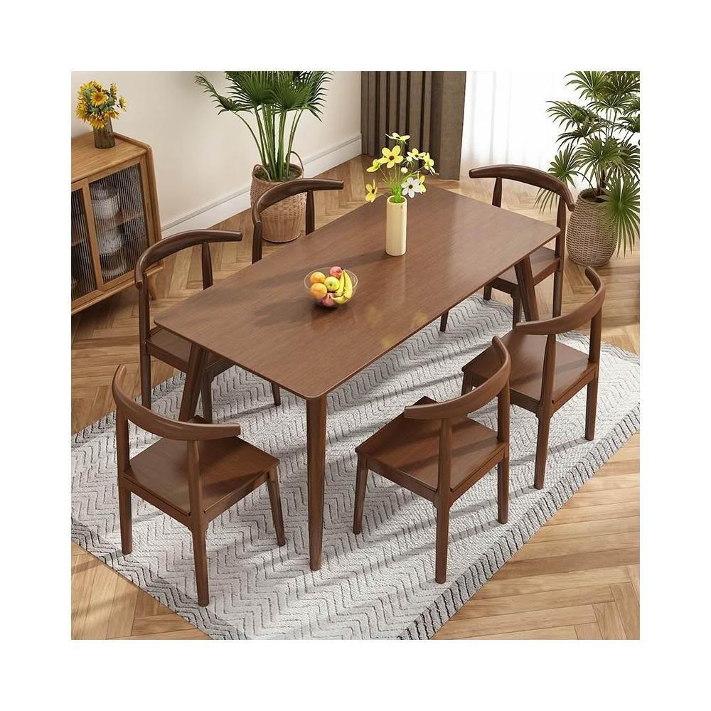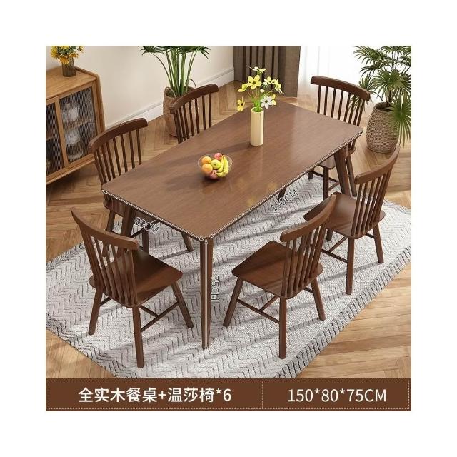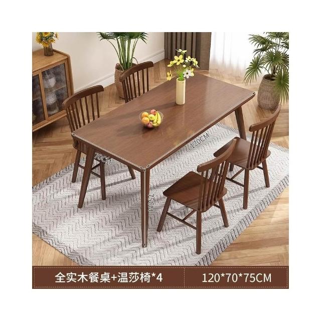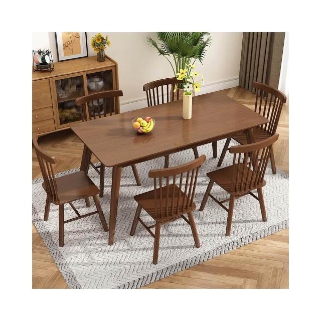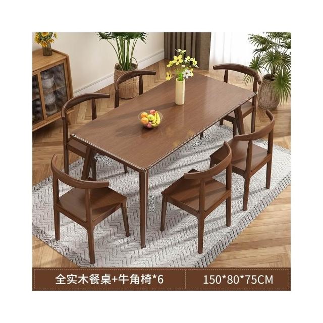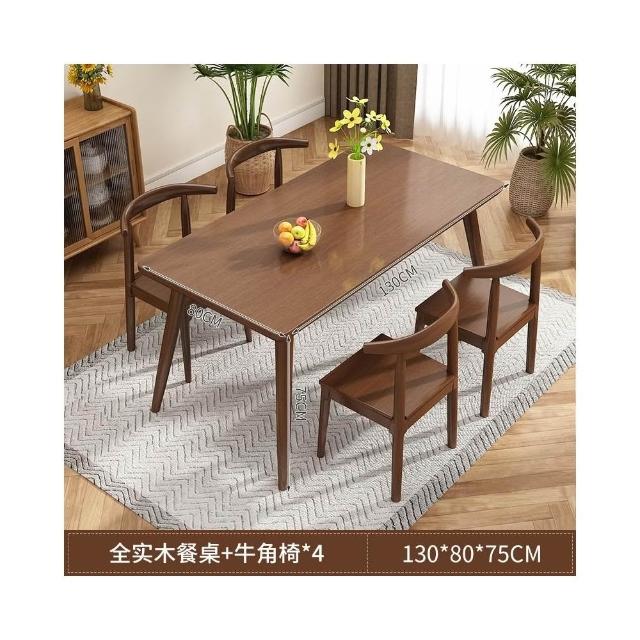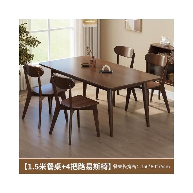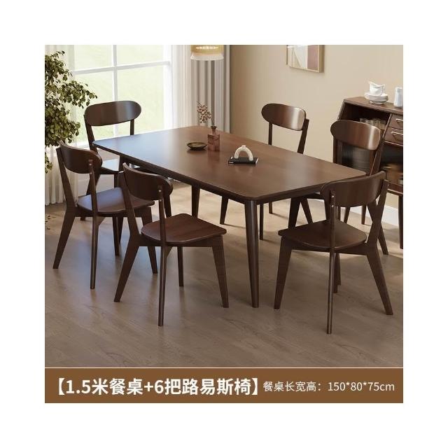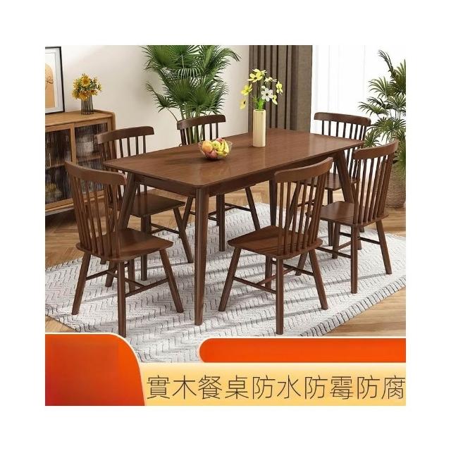 實木餐桌長方形吃飯桌子家用小戶型簡約方形飯桌胡桃色餐桌椅組合