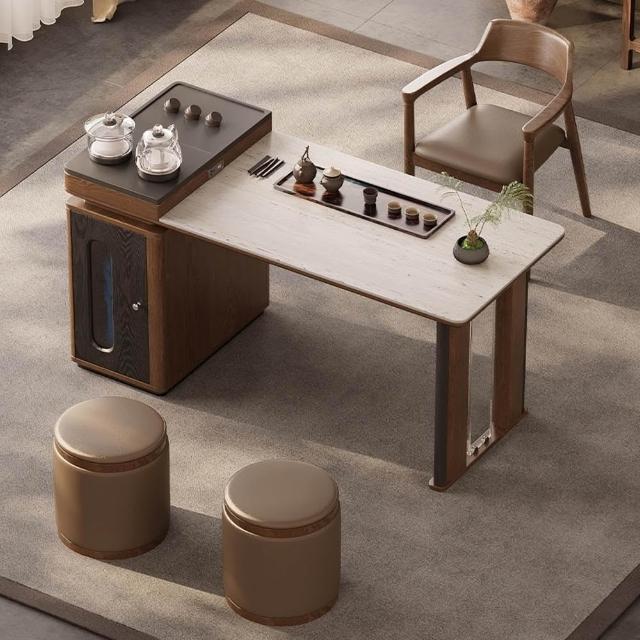 新中式實木陽臺茶桌椅組合禪意宋代美學茶桌意式設計師泡茶臺茶几