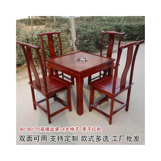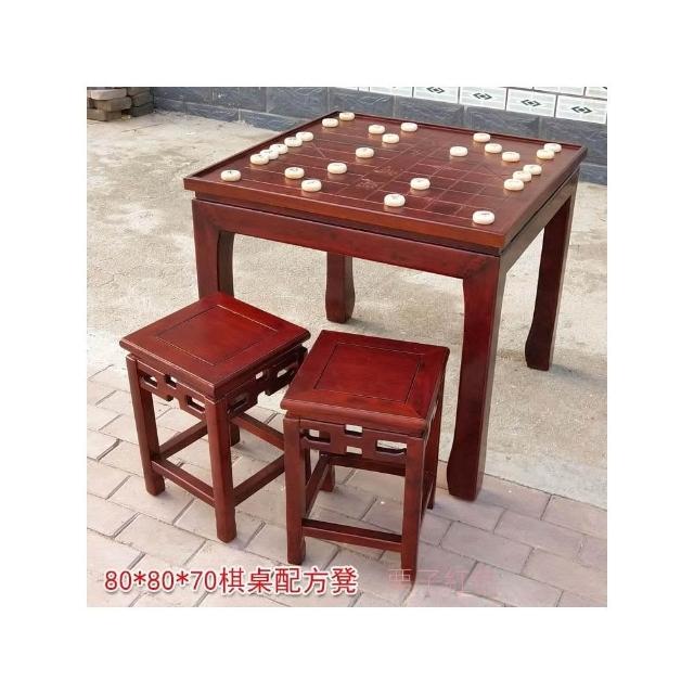 實木五子棋盤桌老榆木圍棋國學象棋雙面用棋桌多功能椅凳組合