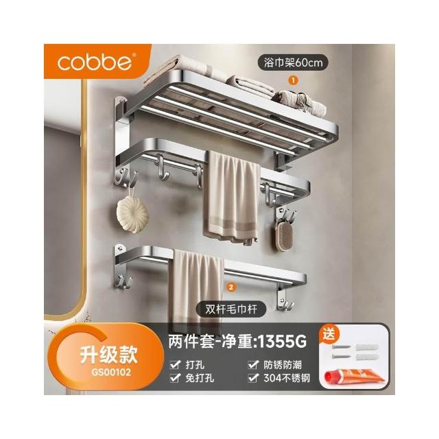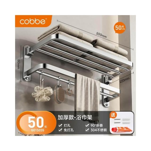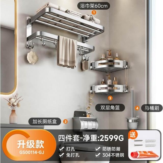 毛巾架不銹鋼304免打孔衛生間浴室置物架浴巾架壁掛衛浴掛件