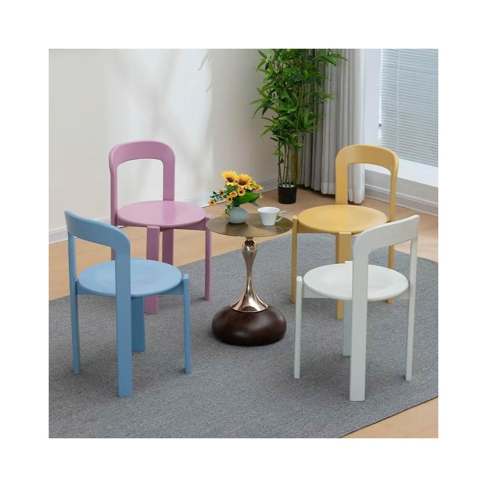設計師款中古彩色可愛雷伊椅 圓潤會議椅 多巴胺奶油靠背實木餐椅