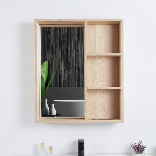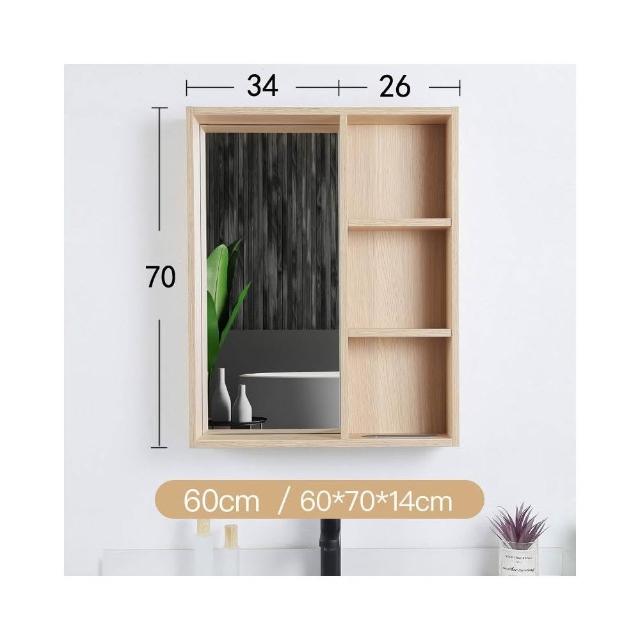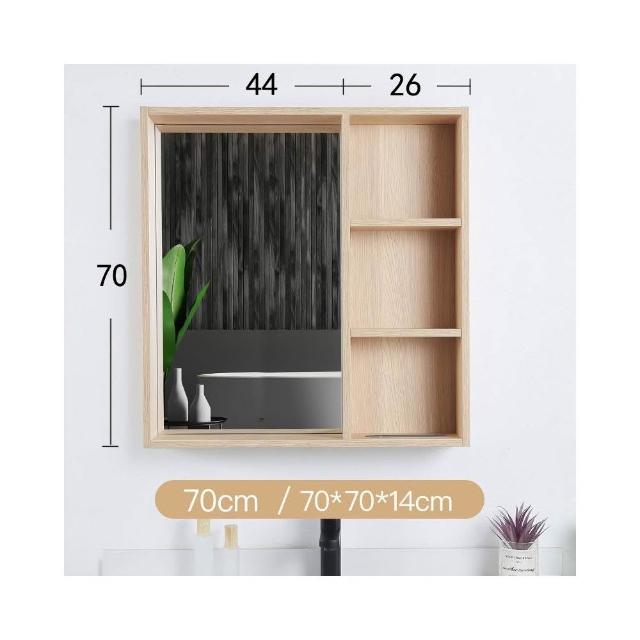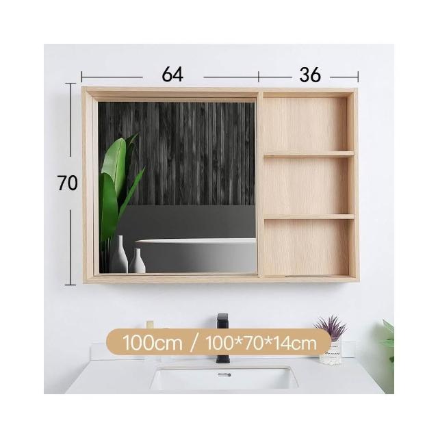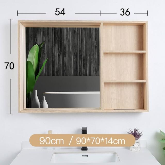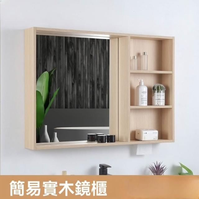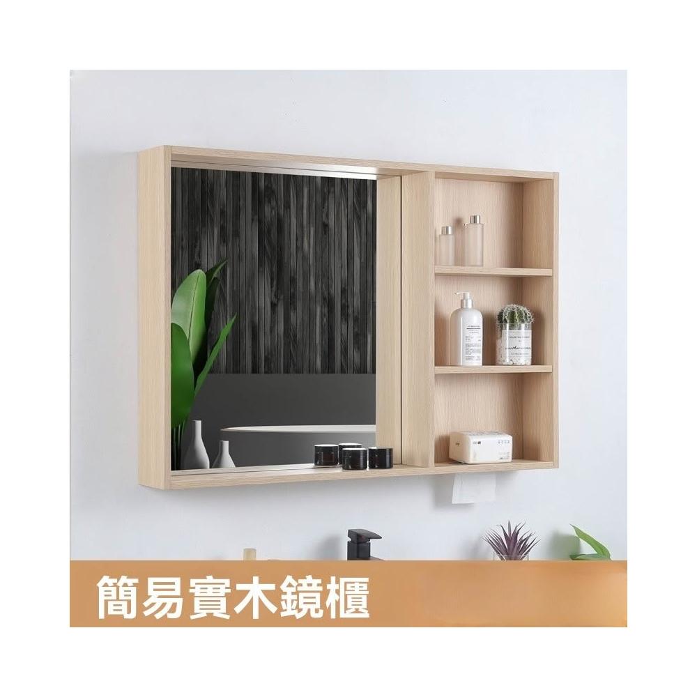 日式原木風 浴室鏡柜 實木掛墻式 衛生間 鏡子帶置物架 超大 簡易 收納鏡箱 收納櫃