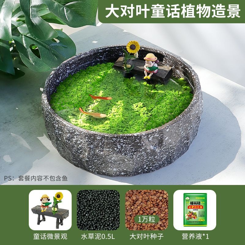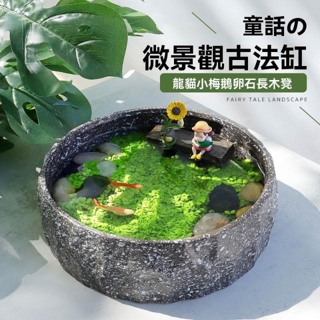 古法養魚 生態缸 客廳桌面創意 水草種子 灰貓垂釣陶瓷 養魚缸 童話世界 景微景觀 水培綠植造景全套