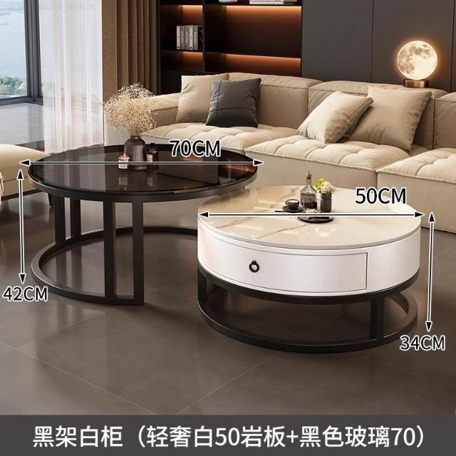 岩板茶幾 家用客廳2025新款極簡輕奢大理石 小戶型現代簡約圓型茶几