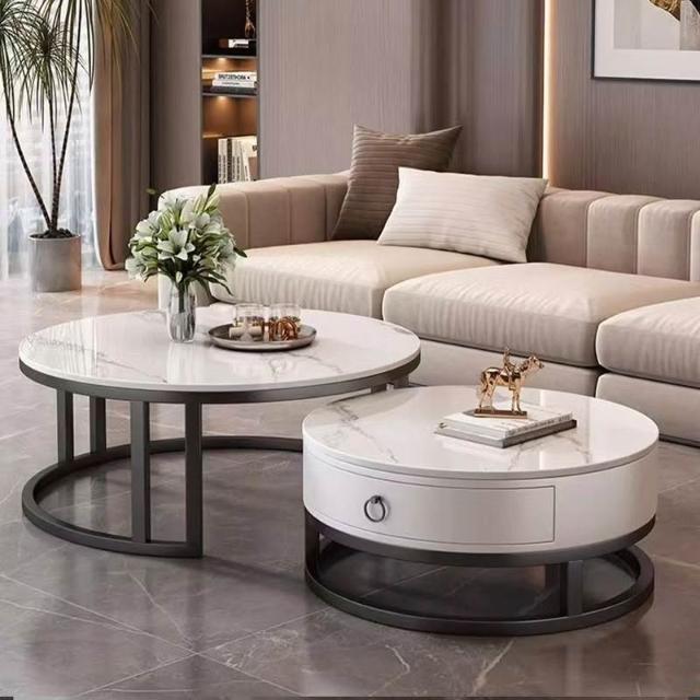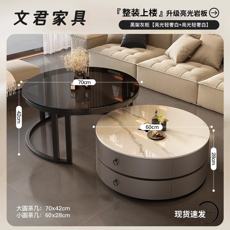 岩板茶幾 家用客廳2025新款極簡輕奢大理石 小戶型現代簡約圓型茶几