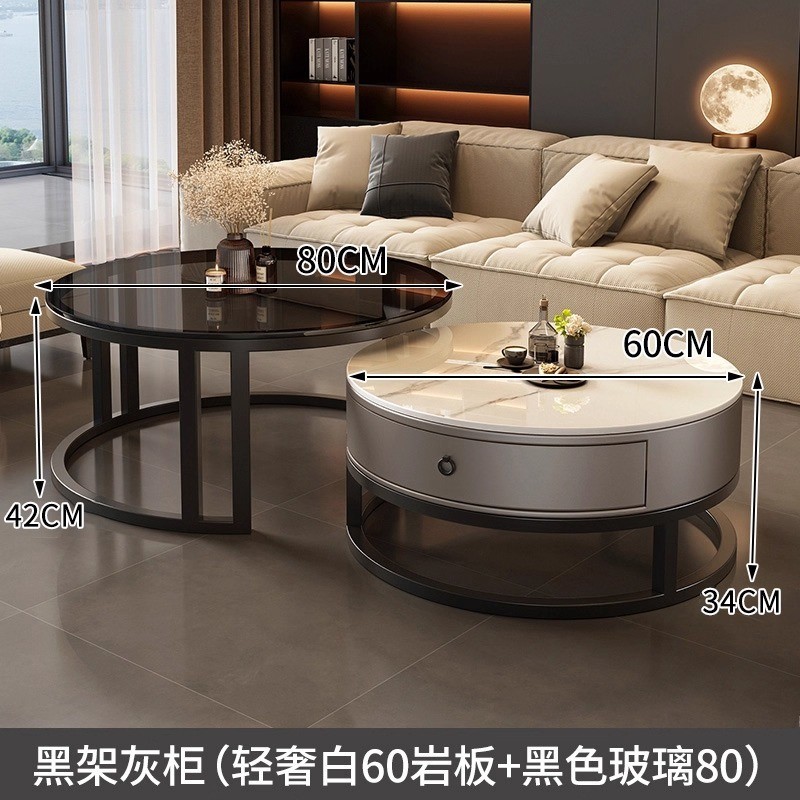 岩板茶幾 家用客廳2025新款極簡輕奢大理石 小戶型現代簡約圓型茶几