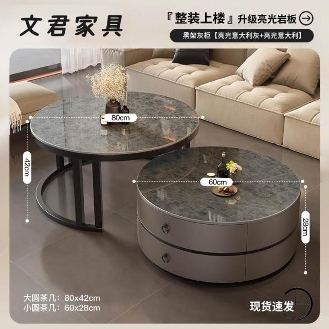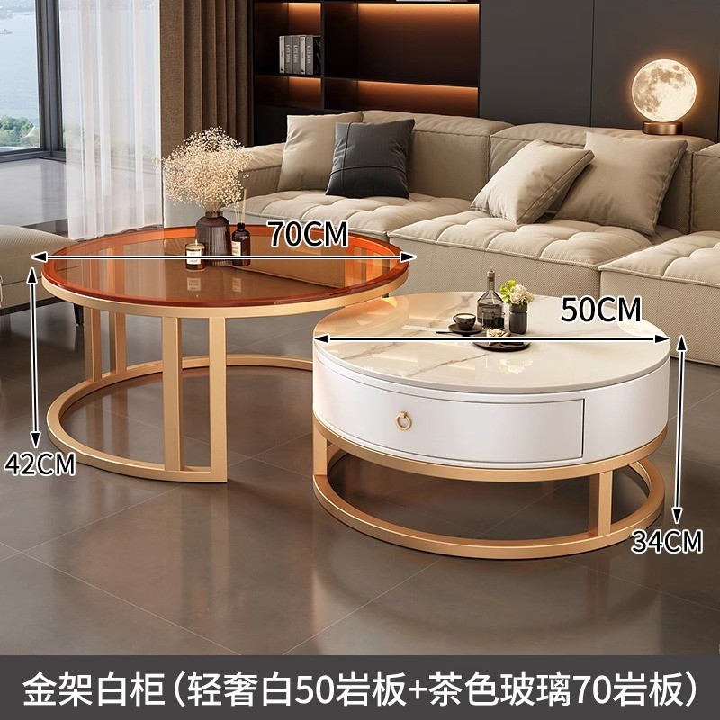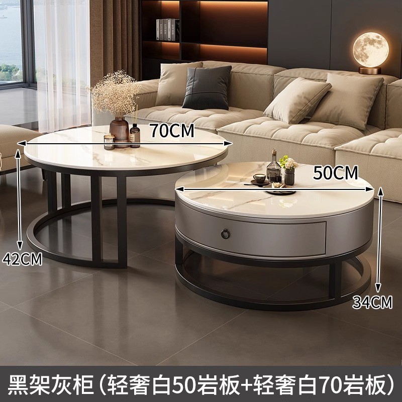 岩板茶幾 家用客廳2025新款極簡輕奢大理石 小戶型現代簡約圓型茶几