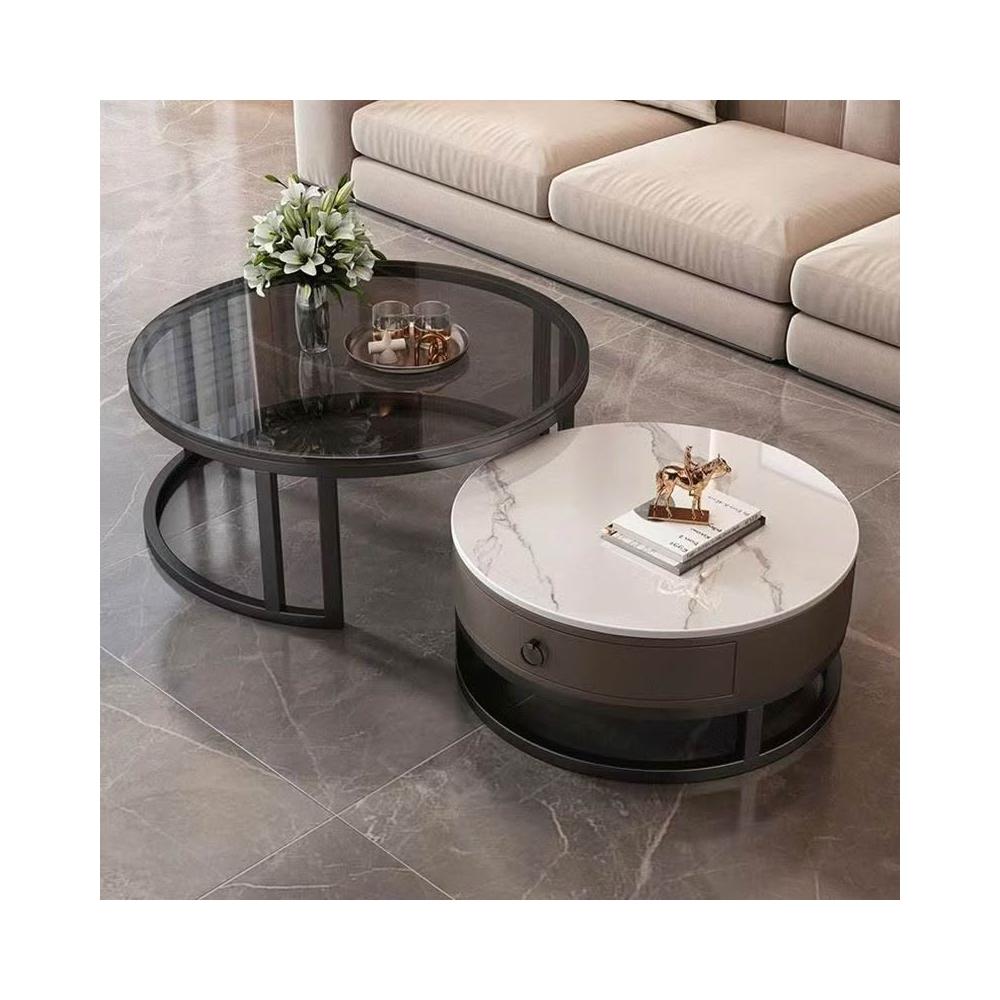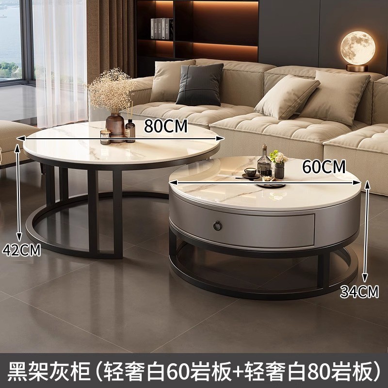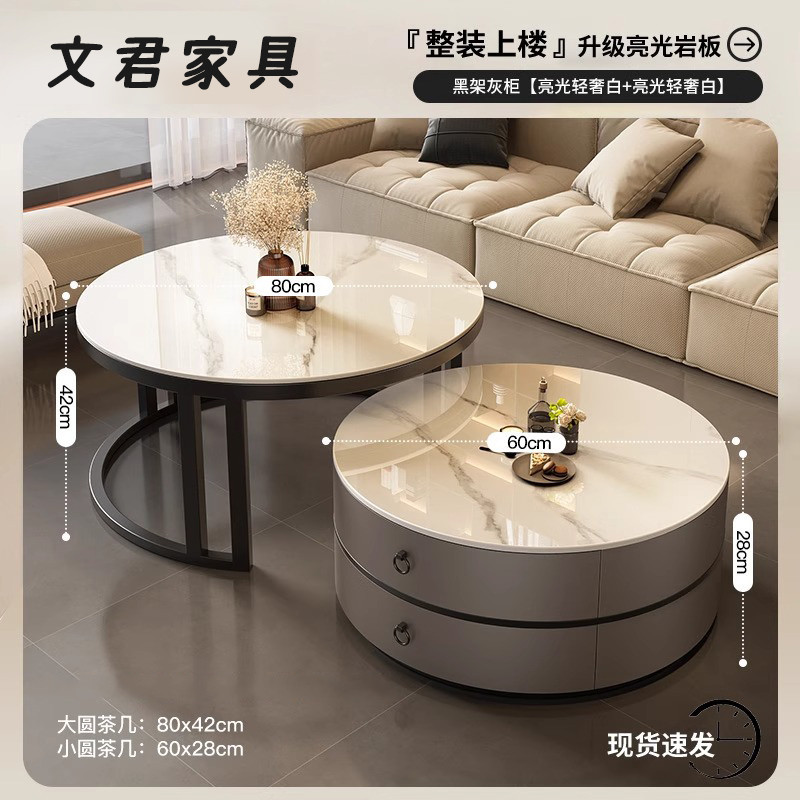 岩板茶幾 家用客廳2025新款極簡輕奢大理石 小戶型現代簡約圓型茶几