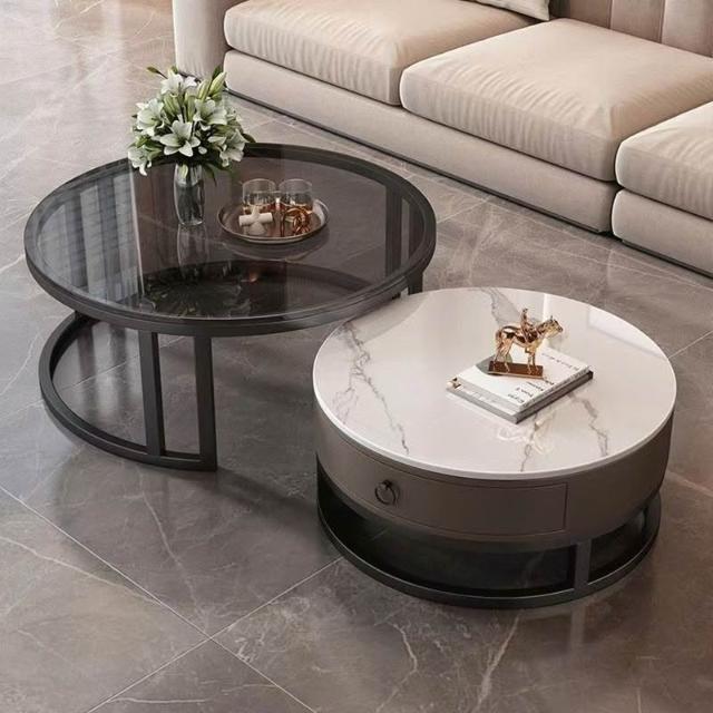 岩板茶幾 家用客廳2025新款極簡輕奢大理石 小戶型現代簡約圓型茶几