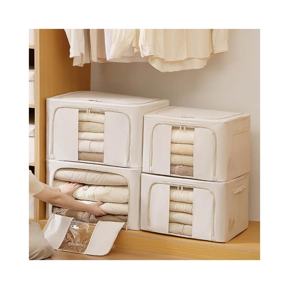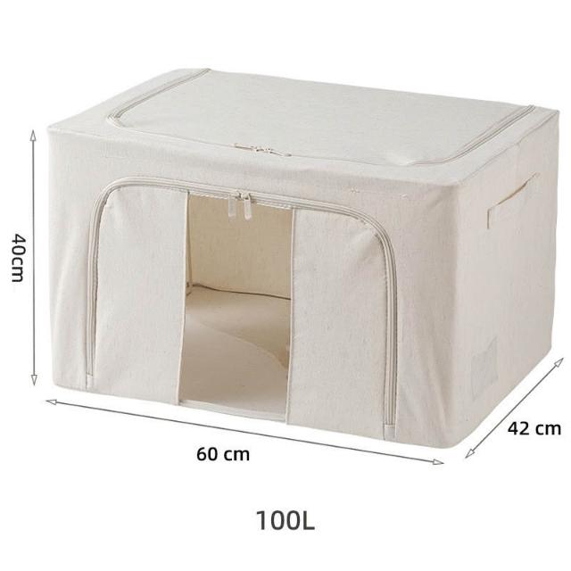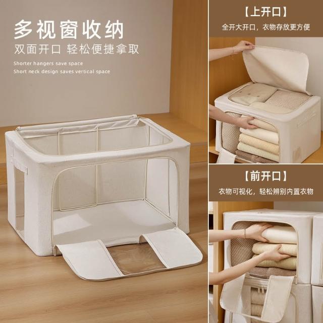 棉麻收納箱 布藝 可視窗衣櫃 衣服整理箱 大容量可折疊