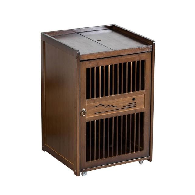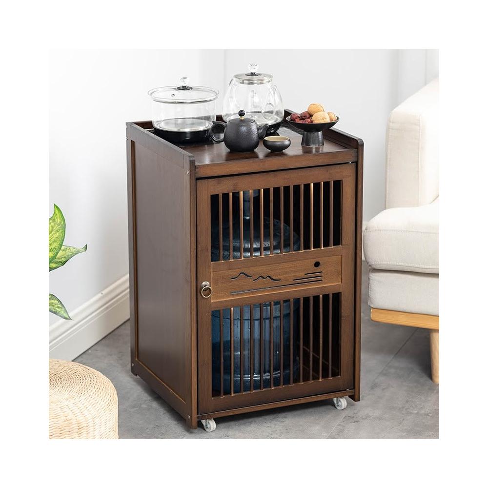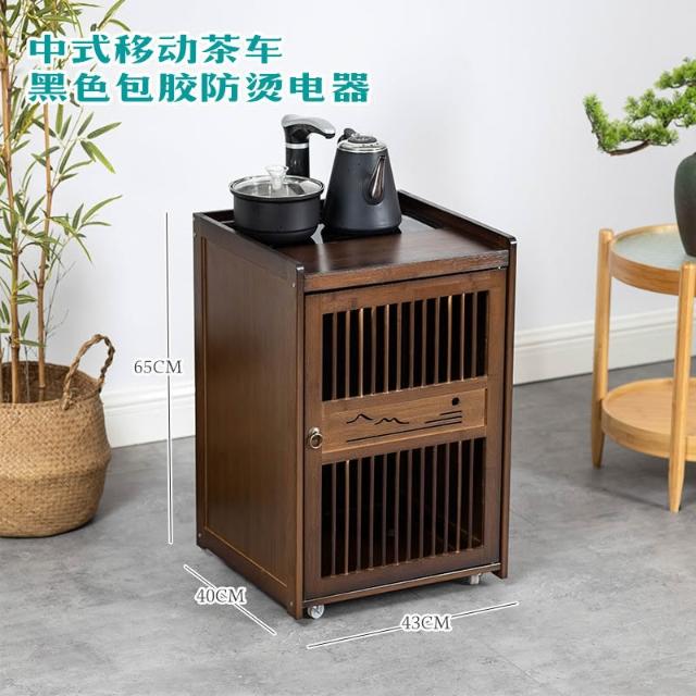 移动茶水柜小茶台茶吧 桌边柜置物架实木下置 水桶烧水壶一体茶柜子