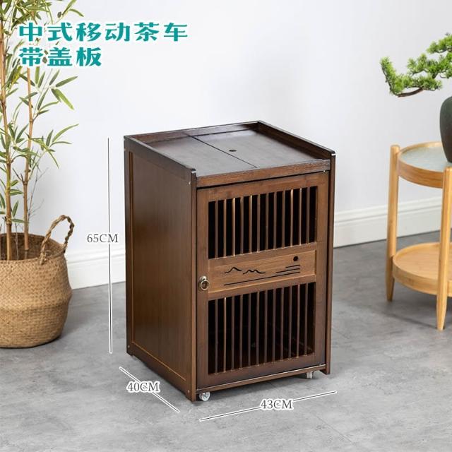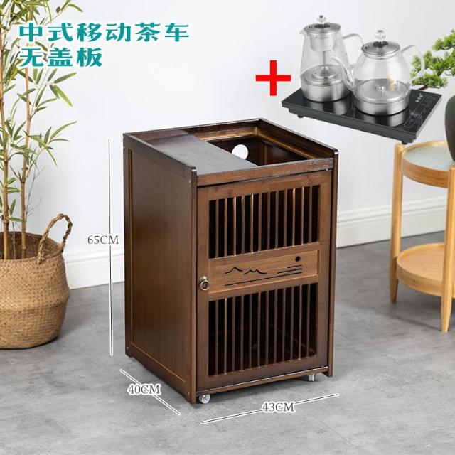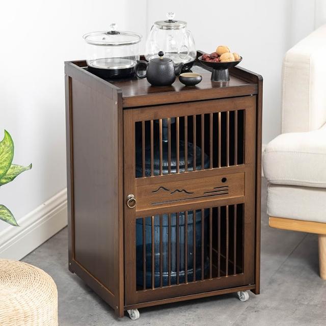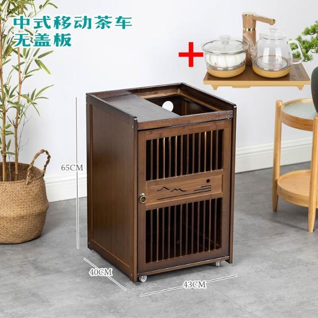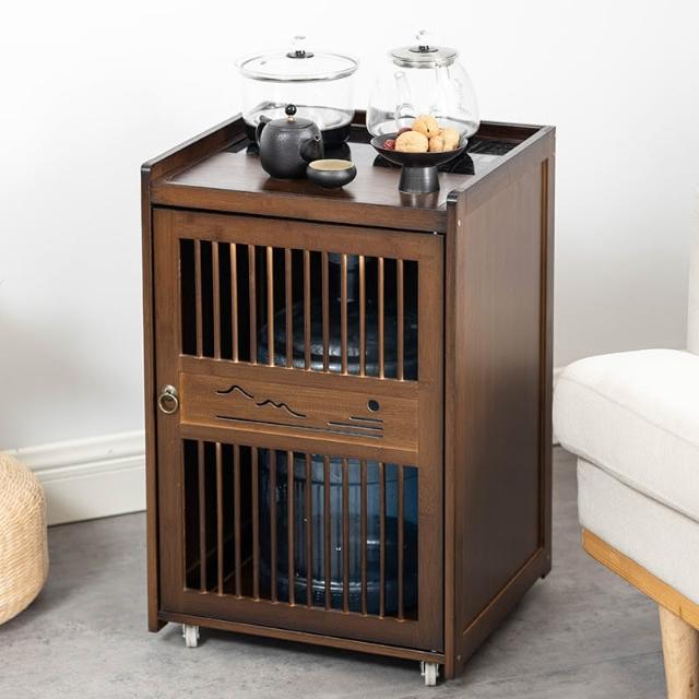 移动茶水柜小茶台茶吧 桌边柜置物架实木下置 水桶烧水壶一体茶柜子