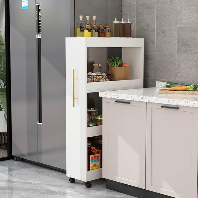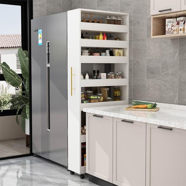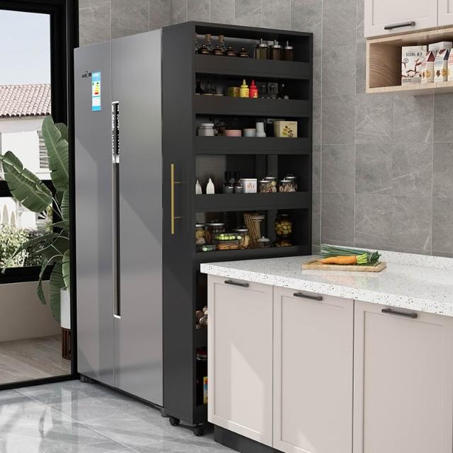 冰箱側隱藏式夾縫收納櫃 廚房置物架 邊櫃 側拉書架 書櫃 大容量可移動