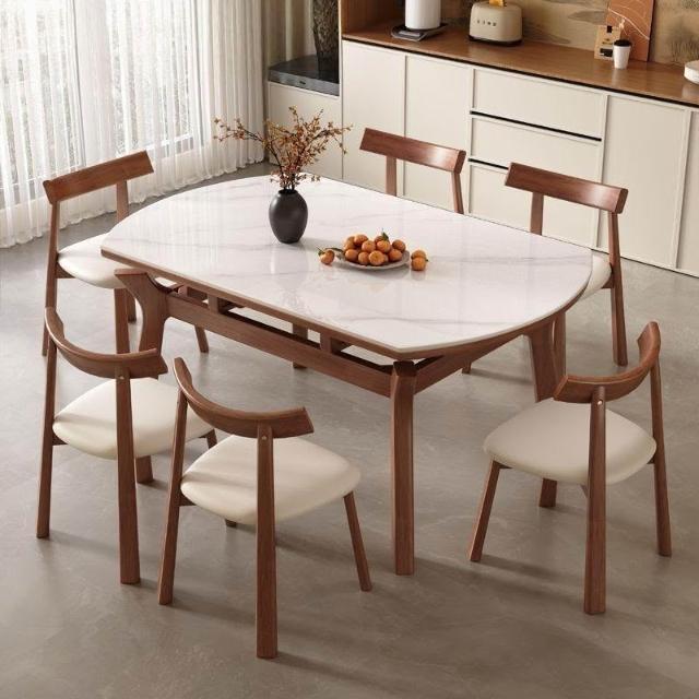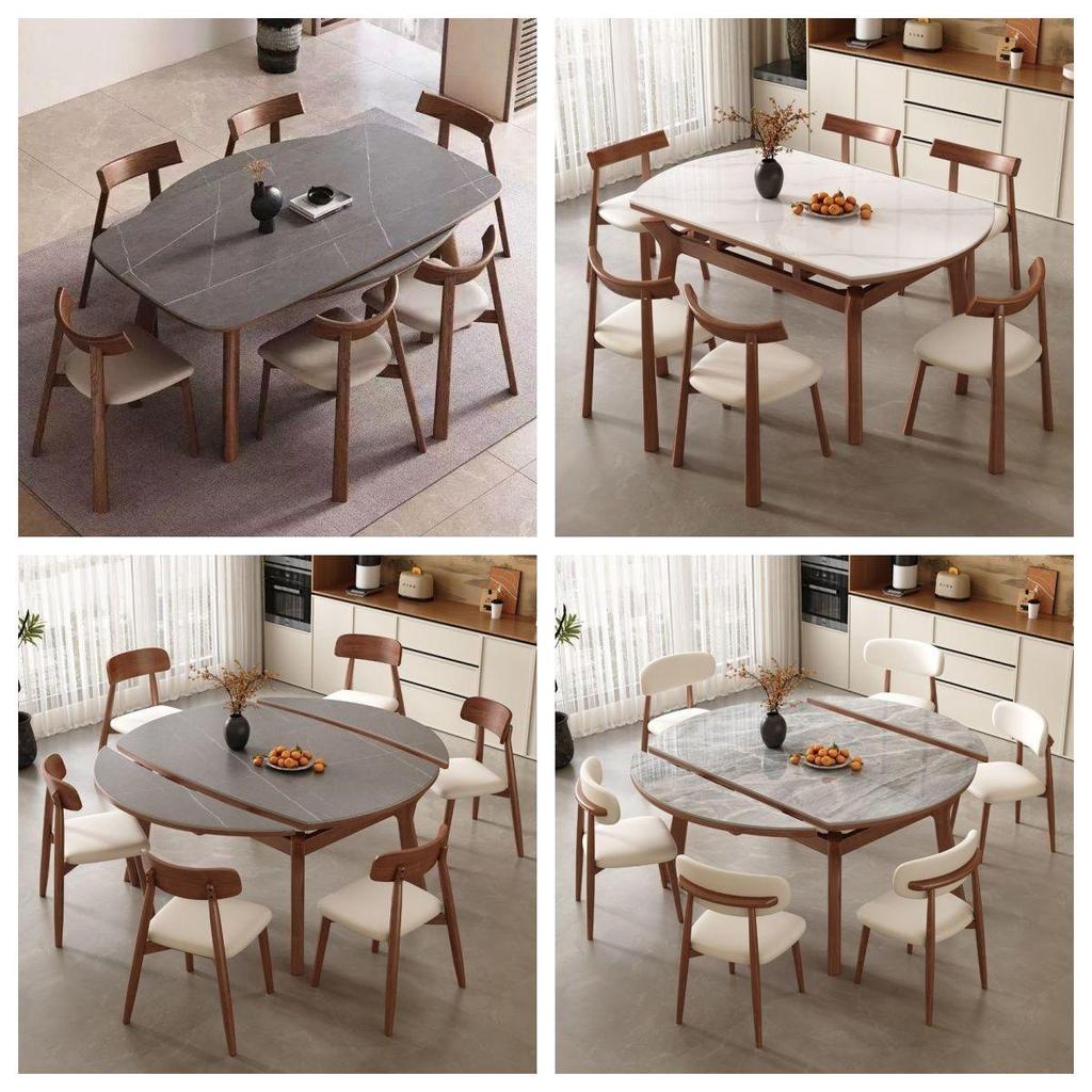 白蠟木實木伸縮餐桌三合一 承重好實木餐桌方圓 兩用巖板餐桌家用