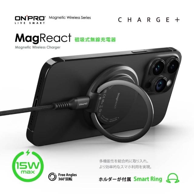 ONPROMagReact 15W 磁吸式無線充電盤 磁吸無線充電器 快充 支架 指環 MagSafe 輕巧便攜