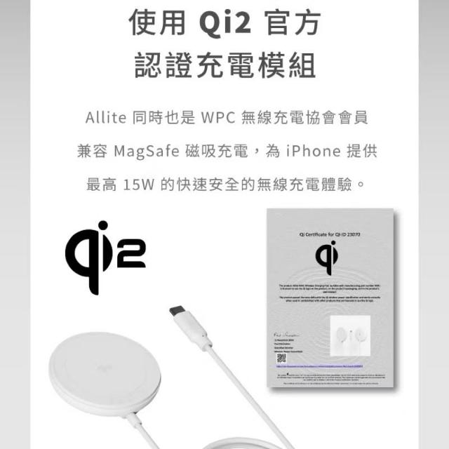 Allite WM1 Qi2 15W 無線快充充電器 快充充電器 無線快充 充電器 快充 充電盤 無線充電盤
